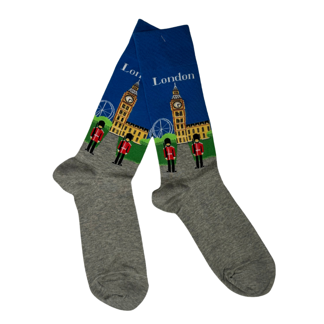 Big Ben, la noria, guardias reales… Todo el ícono londinense estampado en estos calcetines para los más viajeros.