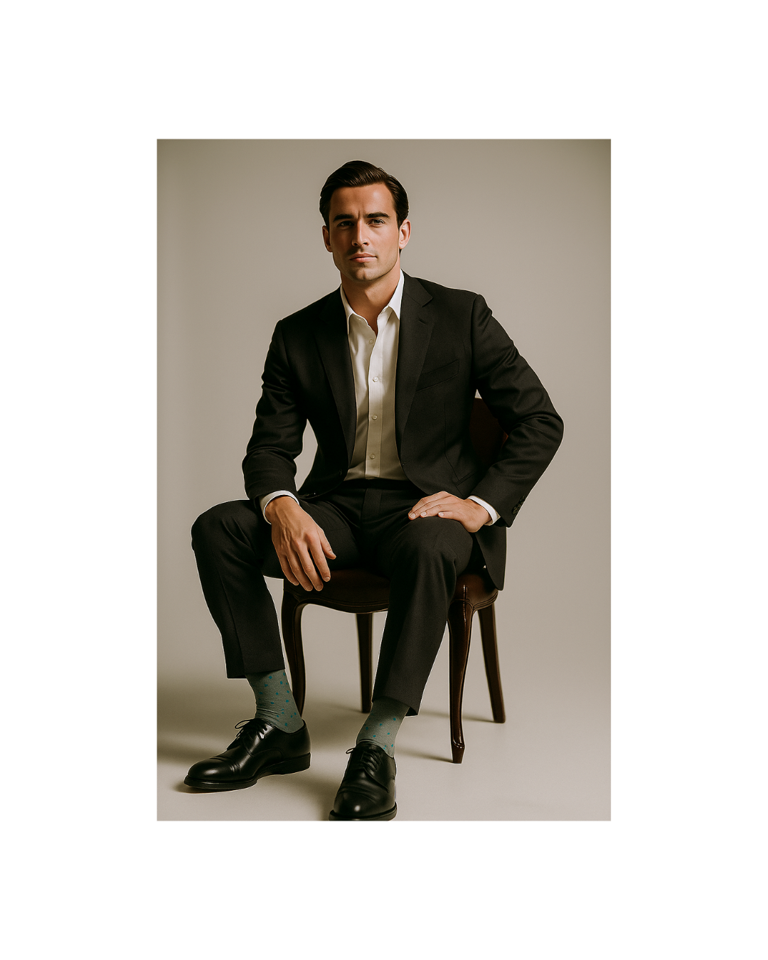 Mini lunares verdes sobre gris claro. Un modelo limpio, fresco y combinable con todo.